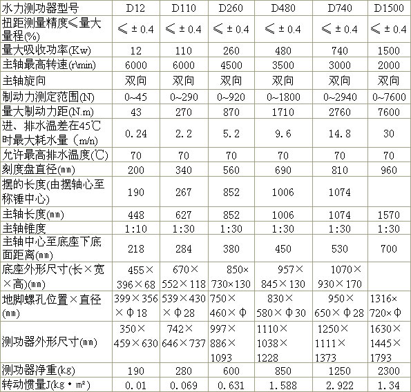 D系列(銷釘式)水力測功器的規(guī)格型號